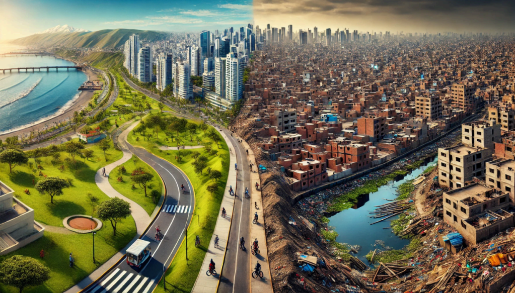 En Lima, la desigualdad urbana es evidente. Las zonas norte y sur de la ciudad no cumplen con las necesidades de sus habitantes y, en lugar de ofrecer soluciones, generan más dificultades en el día a día de las personas. En estas zonas existen humedales y huacas que podrían funcionar como espacios de conservación ambiental y cultural o como puntos de atracción turística. No obstante, debido a la falta de planificación urbana y al desinterés de las autoridades, estos espacios terminan convertidos en vertederos de residuos sólidos, focos de contaminación y lugares abandonados de los que nadie se hace responsable. La ausencia de una gestión adecuada no solo priva a la población de sus beneficios, sino que también agrava la crisis ambiental y social en la ciudad.