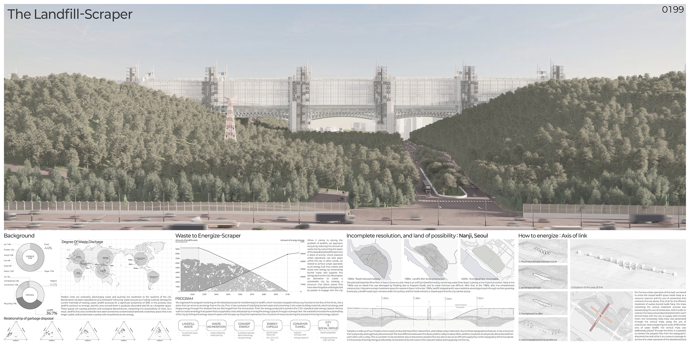 Más que un rascacielos en sentido convencional, la propuesta se plantea como una infraestructura ambiental sumergida, un organismo arquitectónico que interactúa con el flujo del río y colabora con procesos biológicos para restaurar ecosistemas urbanos contaminados.